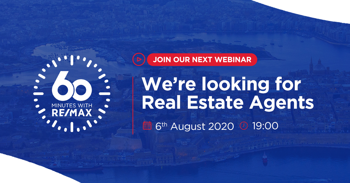 In this week’s edition of the online webinar series ‘60 minutes with RE/MAX’, office manager Carmen Valletta, office manager and franchise owner Joe Caruana Curran, and training consultant Paul Vincenti will talk about what else new recruits can expect when joining RE/MAX as a real estate agent. Here’s a sneak peek.
