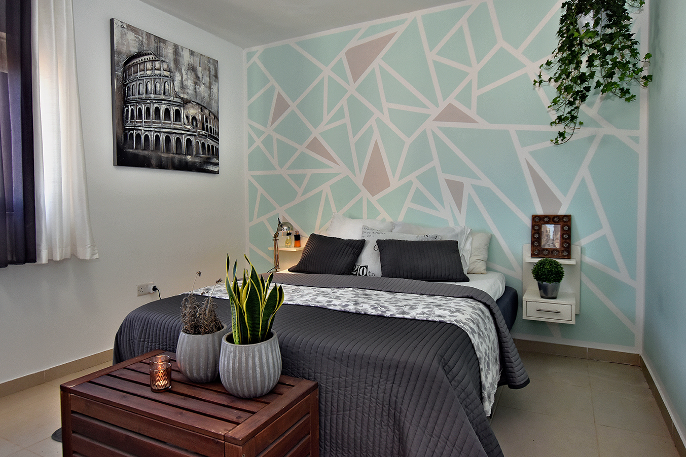 Before you get started, it’s important to prepare the bedroom for its makeover. If the room is completely bare, you don’t have much to do. Simply cover the floors, electrical points and door jambs to protect them from paint. Once the painting is done, it’s just a matter of putting furnishings and decorations in.