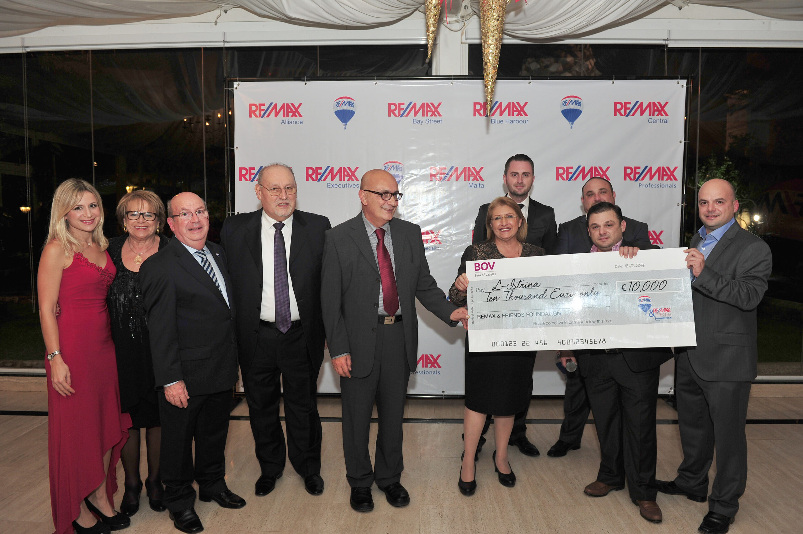 The RE/MAX & Friends foundation has donated € 10, 000 to Her Excellency, The President of Malta, Marie-Louise Coleiro Preca for the L-Istrina campaign. The donation was made during the RE/MAX Malta annual Christmas party, held at Villa Arrigo. RE/MAX associates as well as their staff also attended the 12-hour fund raising event on Boxing Day, where they volunteered to answered the phones.
